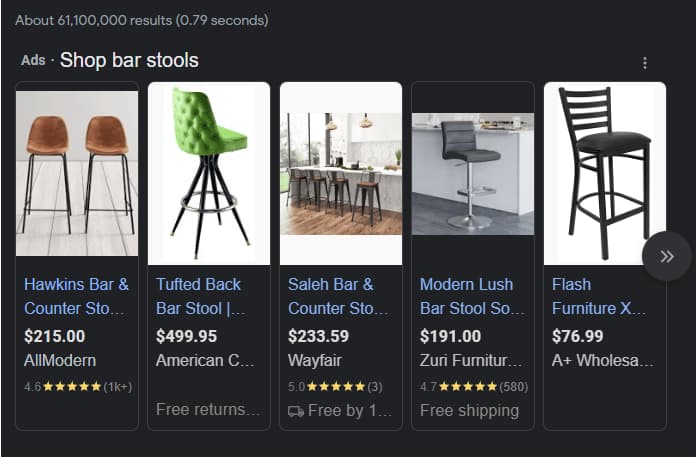 Along with that, if your feed is optimized, Google will be able to automatically pull information such as free shipping and place it in your Product Ads.
