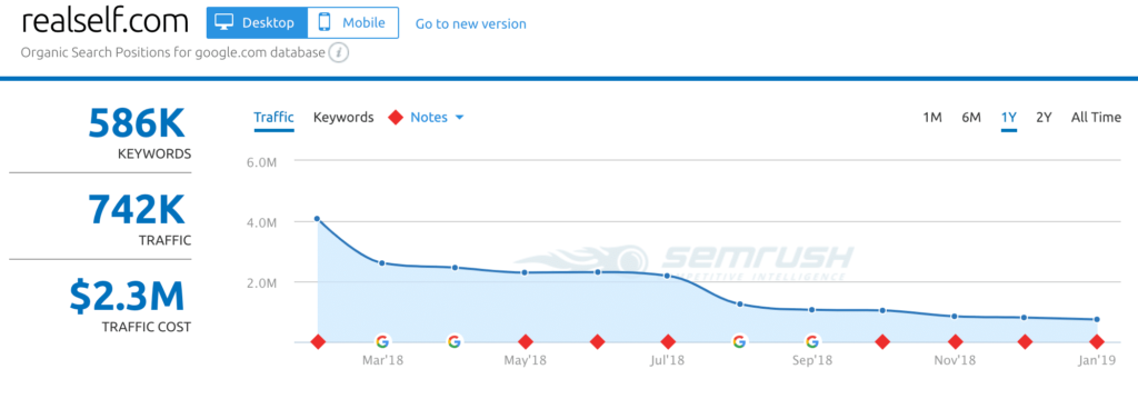But according to RealSelf CEO, Tom Seery, Google’s now infamous “medic update” allegedly took a toll on the company’s website traffic.