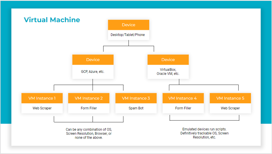 If the majority of bots are using Virtual Machines, and Screen Resolution measures the resolution of your physical device, what happens when the device is software?