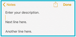 Option two is to follow the steps below to create invisible line breaks. On your mobile device, open the Notes app and add the first line to your post.